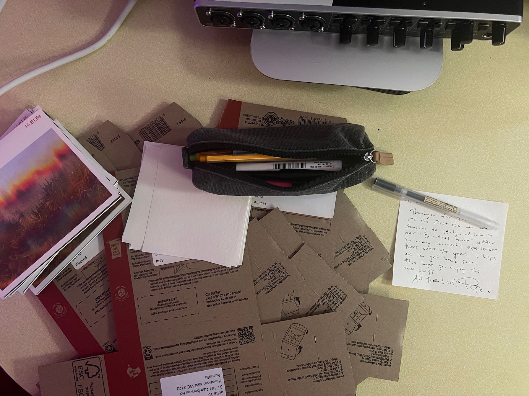 One decision I made was to take the posting of Smith & Cohen merchandise back on rather than outsourcing it. I was initially concerned about the amount of time involved in packing and posting records, because you easily find an hour has passed by the time all is said and done in getting it packed and to the post office and back. But then, while I was in the flow of packing CDs and writing notes to people today, I realised that’s what it’s really all about and having the opportunity to connect directly with people who value our music enough to buy it is a really special and important thing to do.
